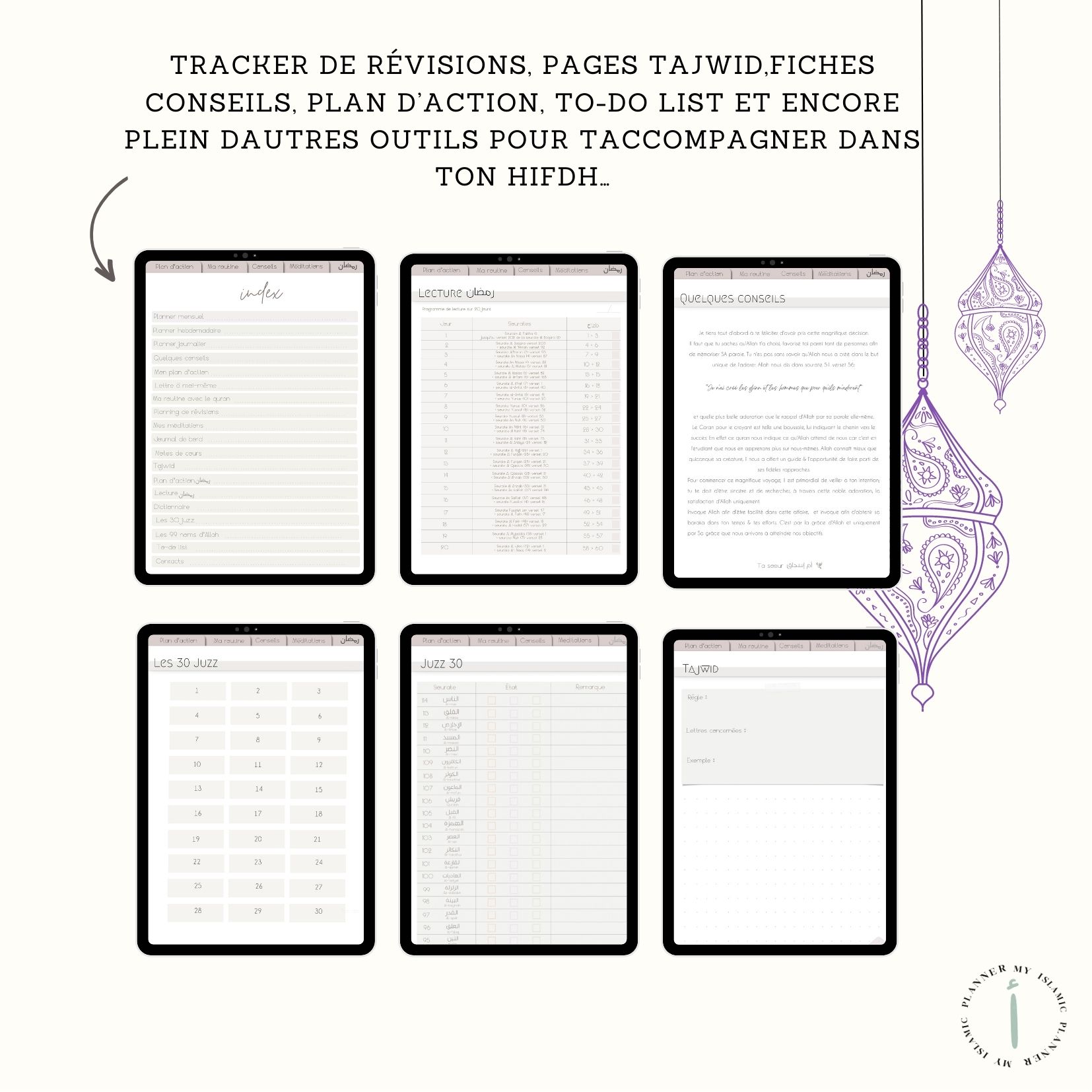 Mémoriser le Quran est une grande adoration et qui dit grande adoration dit grande organisation, mais ne t’inquiètes pas j’ai tout prévu. My quran Planner est un planner digital qui te servira à planifier, organiser, gérer tes révisions et sessions de mémorisation (entre autres).