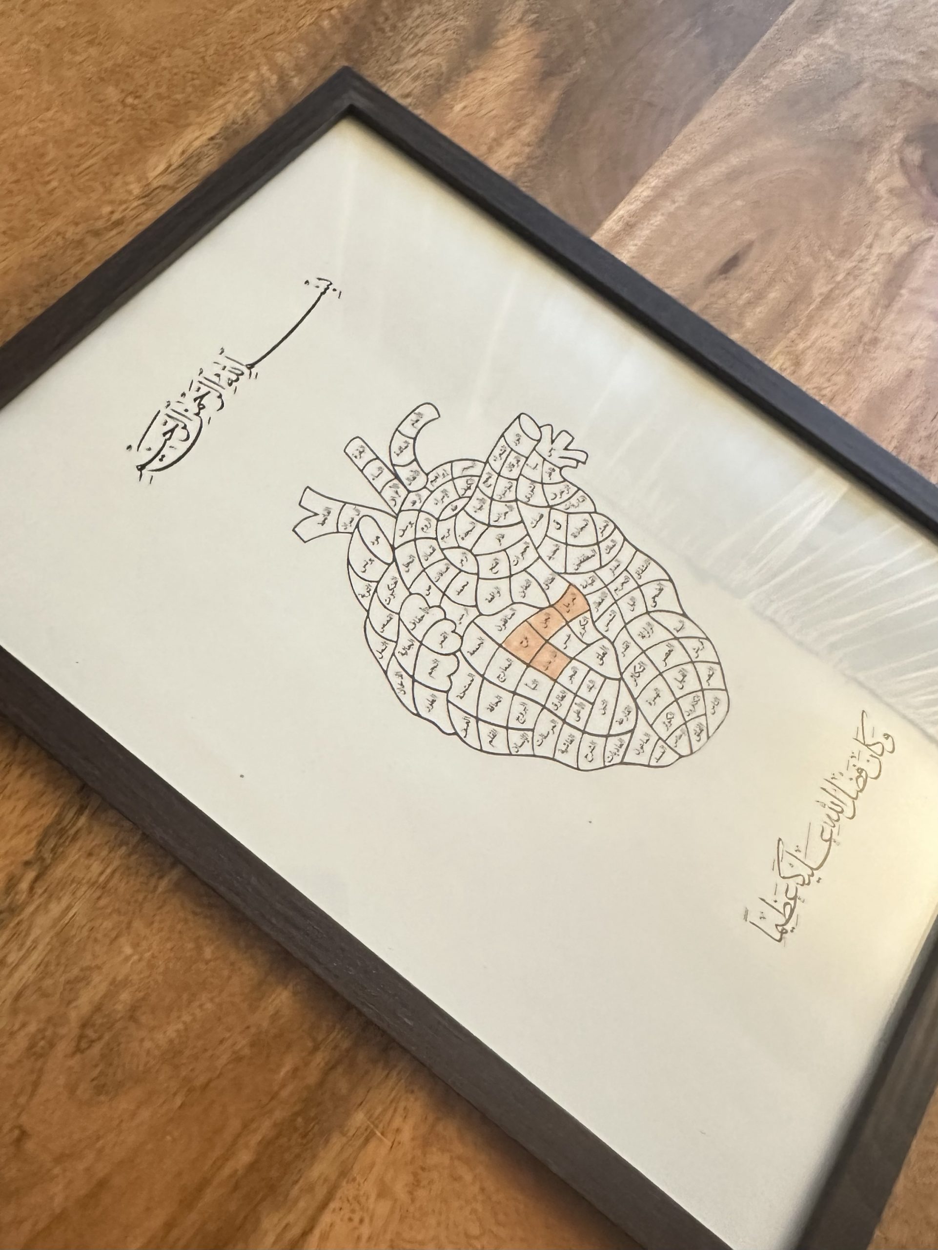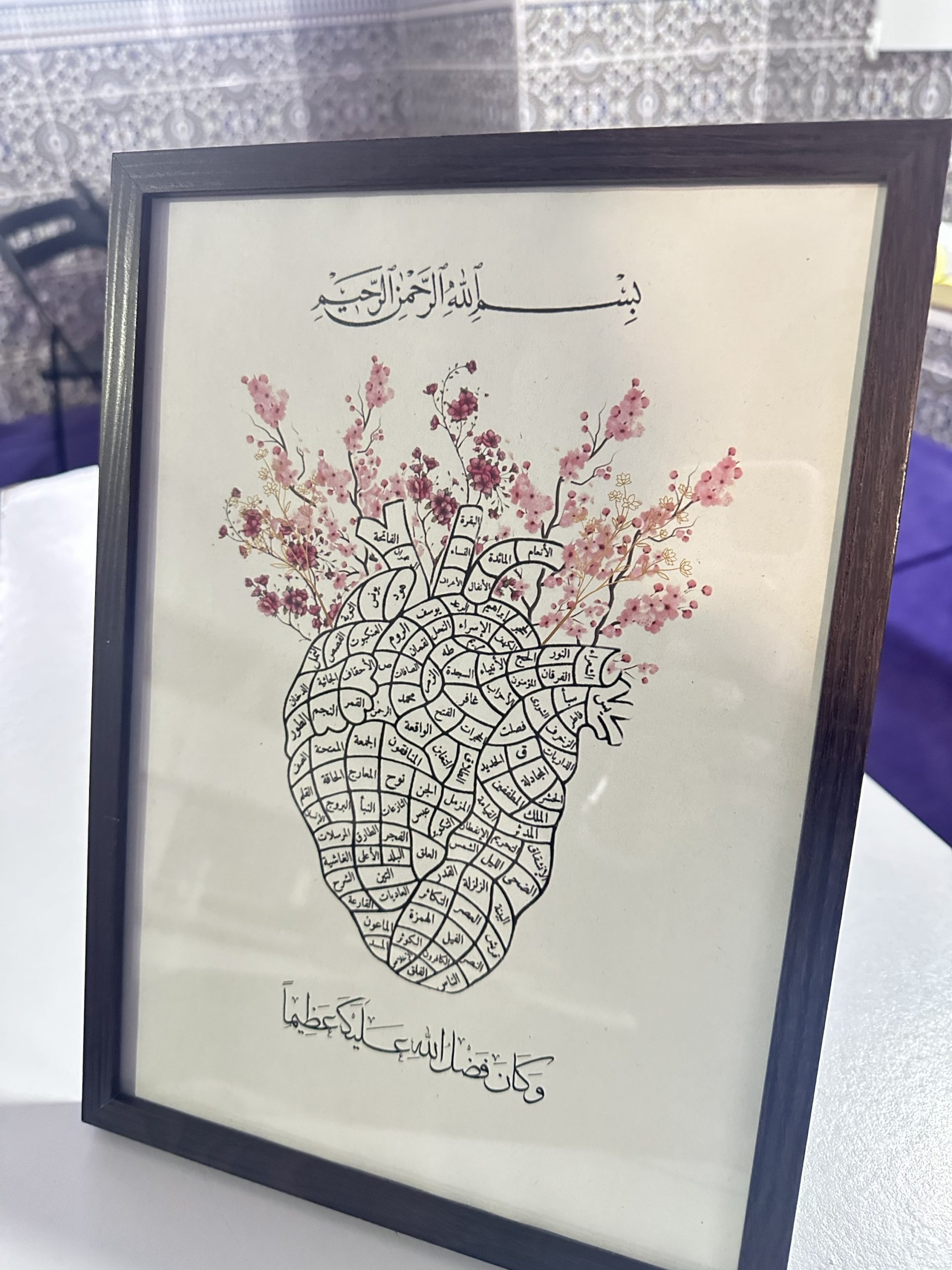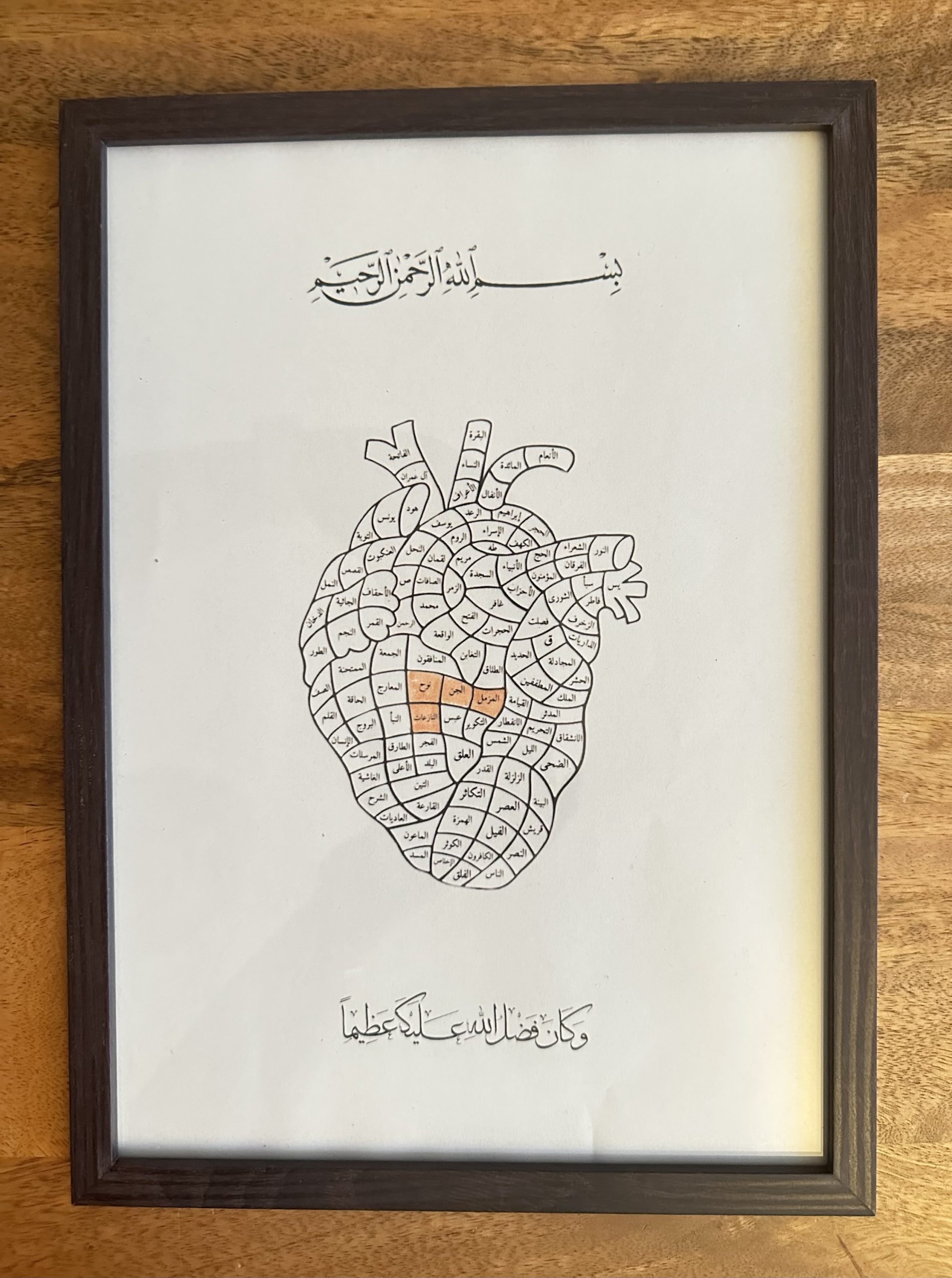 Il s’agit d’une affiche avec au centre, le cœur humain contenant les sourates du coran.
