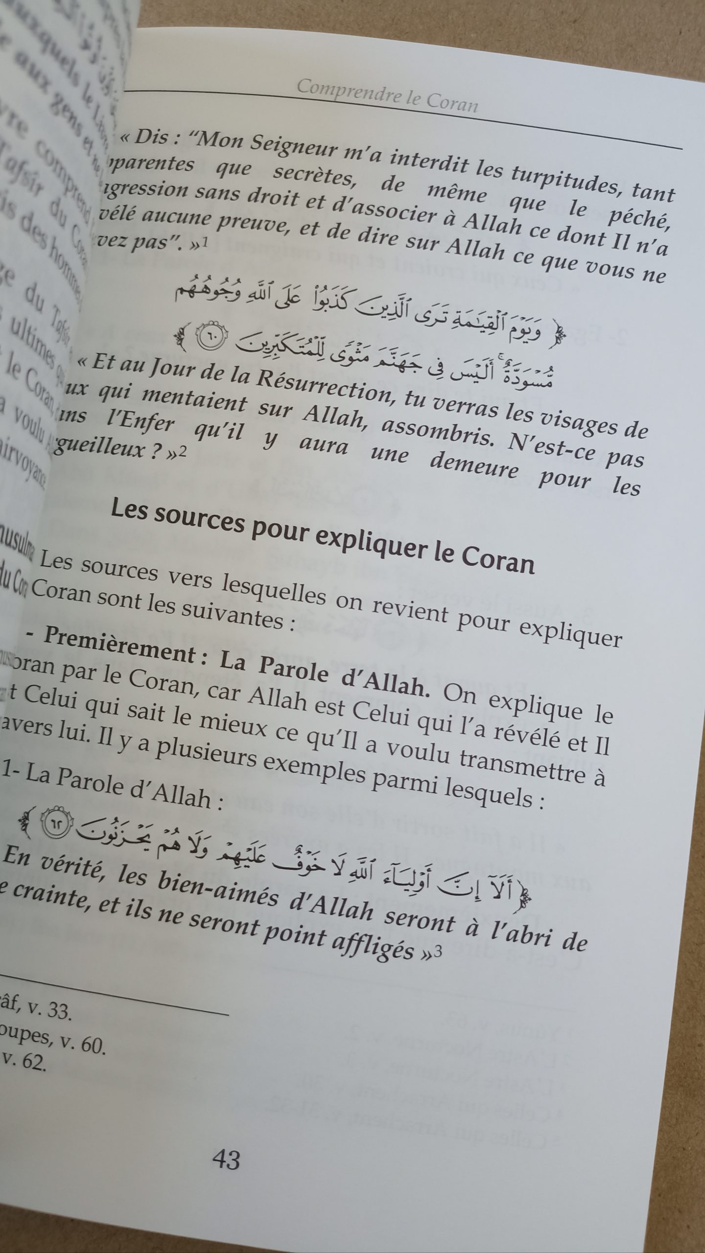 il y a la science de l’exégèse (Ilm ut-Tafsîr) qui est la clarification du sens de la Parole d’Allah. Les gens de science en ont posé les fondements,