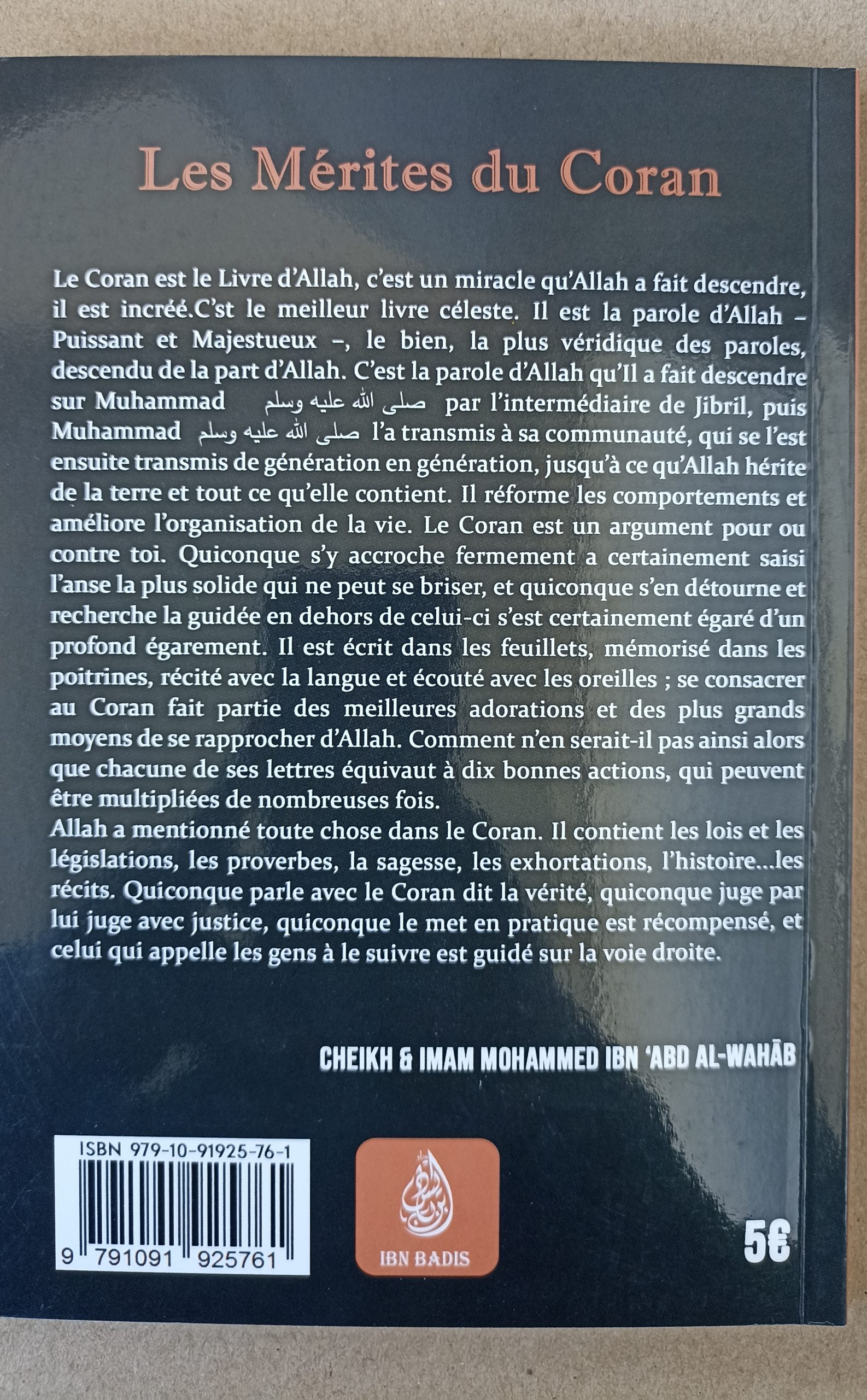 Le Coran est le Livre d’Allah, c’est un miracle qu’Allah a fait descendre, il est incréé. C’est le meilleur livre céleste. Il est la parole d’Allah – Puissant et Majestueux –,