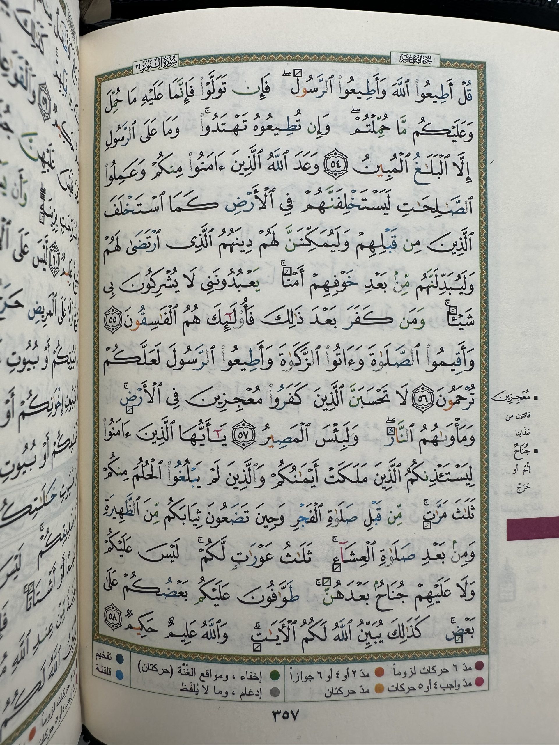 le petit + de ce modèle est la présence des règles de tajwid en couleur.