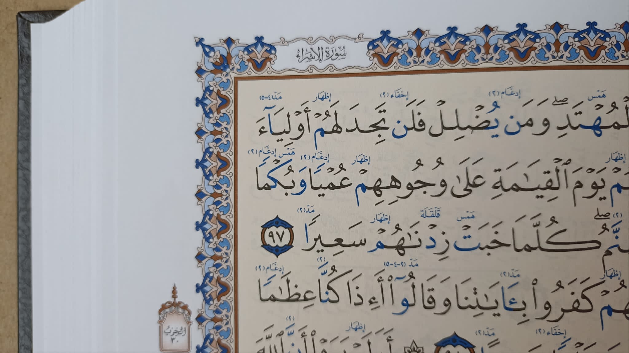 C’est un outil de travail complémentaire, il vous sera d’une grande aide si vous étudiez la science du tajwid ou si vous avez un doute sur une règle lors de votre lecture ou récitation. Ce mushaf est donc un indispensable lors de la mémorisation, pour toute personne étudiant les règles de tajwid.