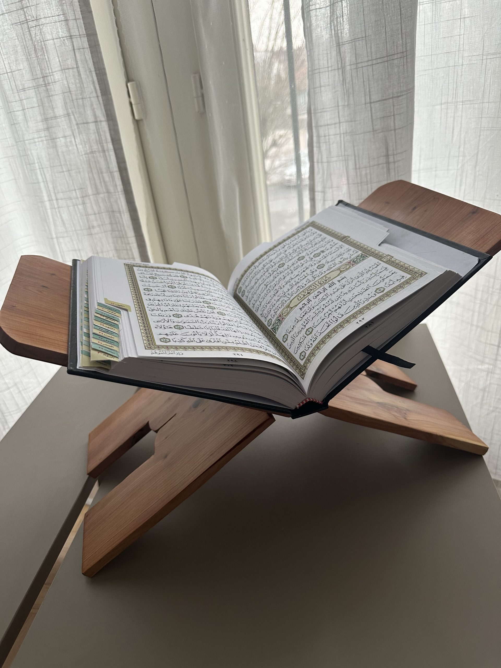 Ce porte coran peut accueillir facilement un mushaf taille A3 mais également un mushaf de taille grand format classique (17X24cm)