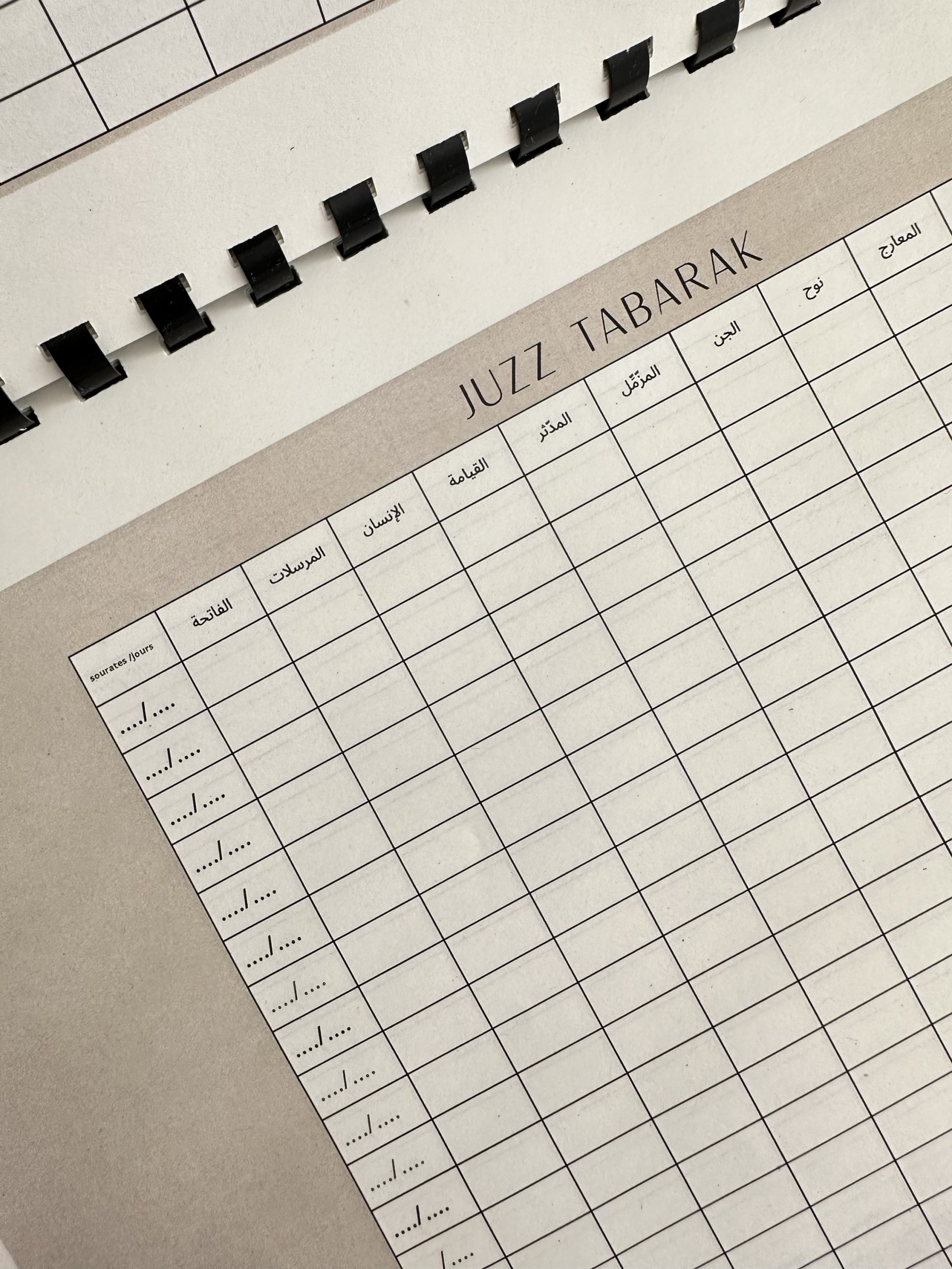 Un tableau de suivi pour juzz amma/ juzz tabarak et juzz qad Sami’